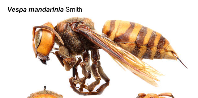 Asian giant hornets, Vespa mandarinia, are the world’s largest hornet, measuring 1.5 – 2 inches in length.