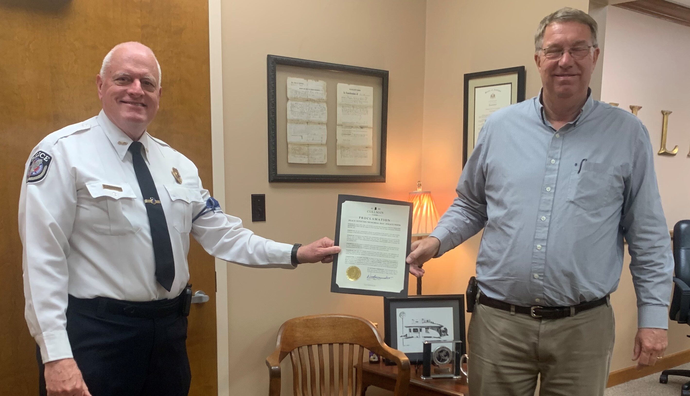 CULLMAN, Ala. – Cullman Mayor Woody Jacobs on Wednesday officially proclaimed May 15, 2020 “Peace Officers Memorial Day” and the week of May 10-16, 2020 “Police Week” in the city of Cullman. On hand to accept the proclamation from Jacobs was Cullman Police Chief Kenny Culpepper.
