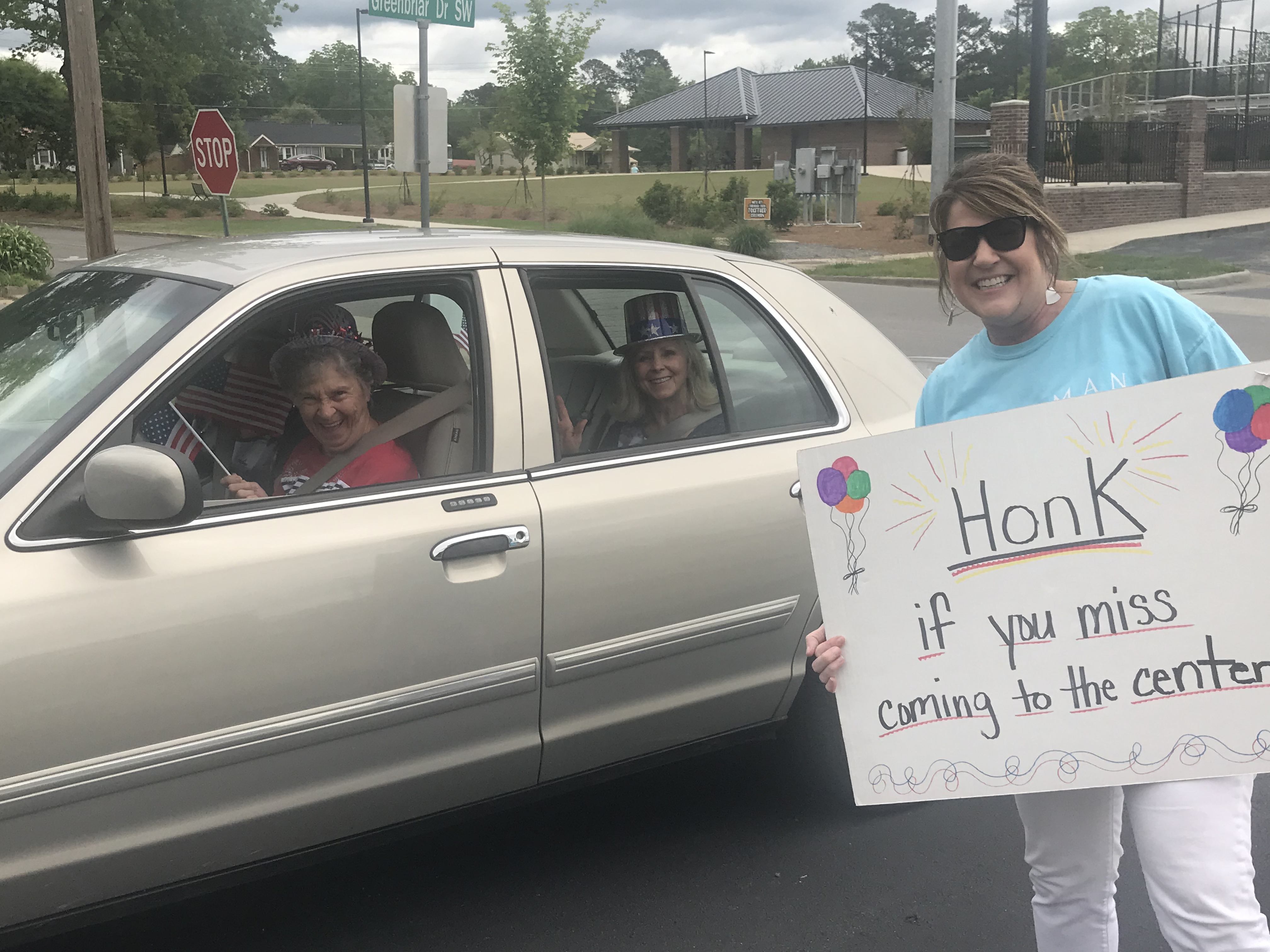 CULLMAN, Ala. – The staff at Donald E. Green Active Adult Center wanted seniors to know just how much they are missed and Tuesday afternoon held the Red, White & Blue Drive Thru for You parade. Staff planned the afternoon event to allow seniors a chance to stop by and say hello and grab a treat from Frios Gourmet Pops. Those who came out were eager for the senior centers to re-open.