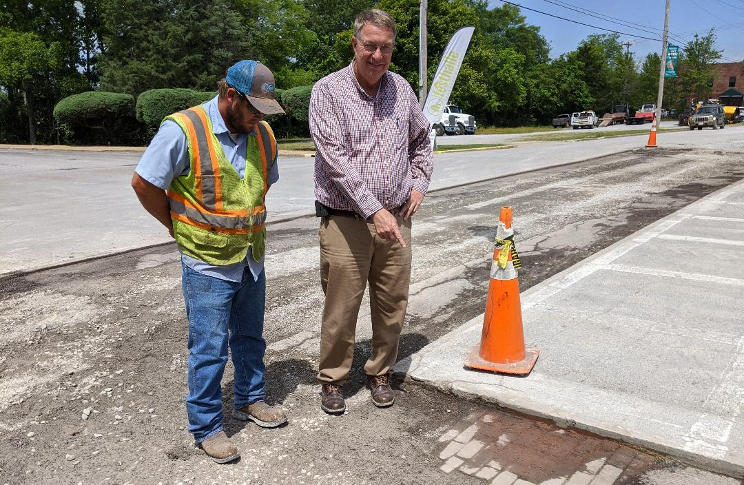 Mayor Woody Jacobs, who was with Bennefield at the site, said that the removed asphalt will receive a temporary patch to make driving easier, and the entire stretch of First Avenue from the Festhalle to Second Street Southeast will eventually be repaved as part of an improvement project that will include: