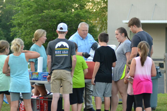 Northbrook Baptist Church Adult Ministry & Food Service Ministry Director Wade Maynard serves refreshments to kids at the church’s family movie night Friday. (Maggie Darnell for The Cullman Tribune)