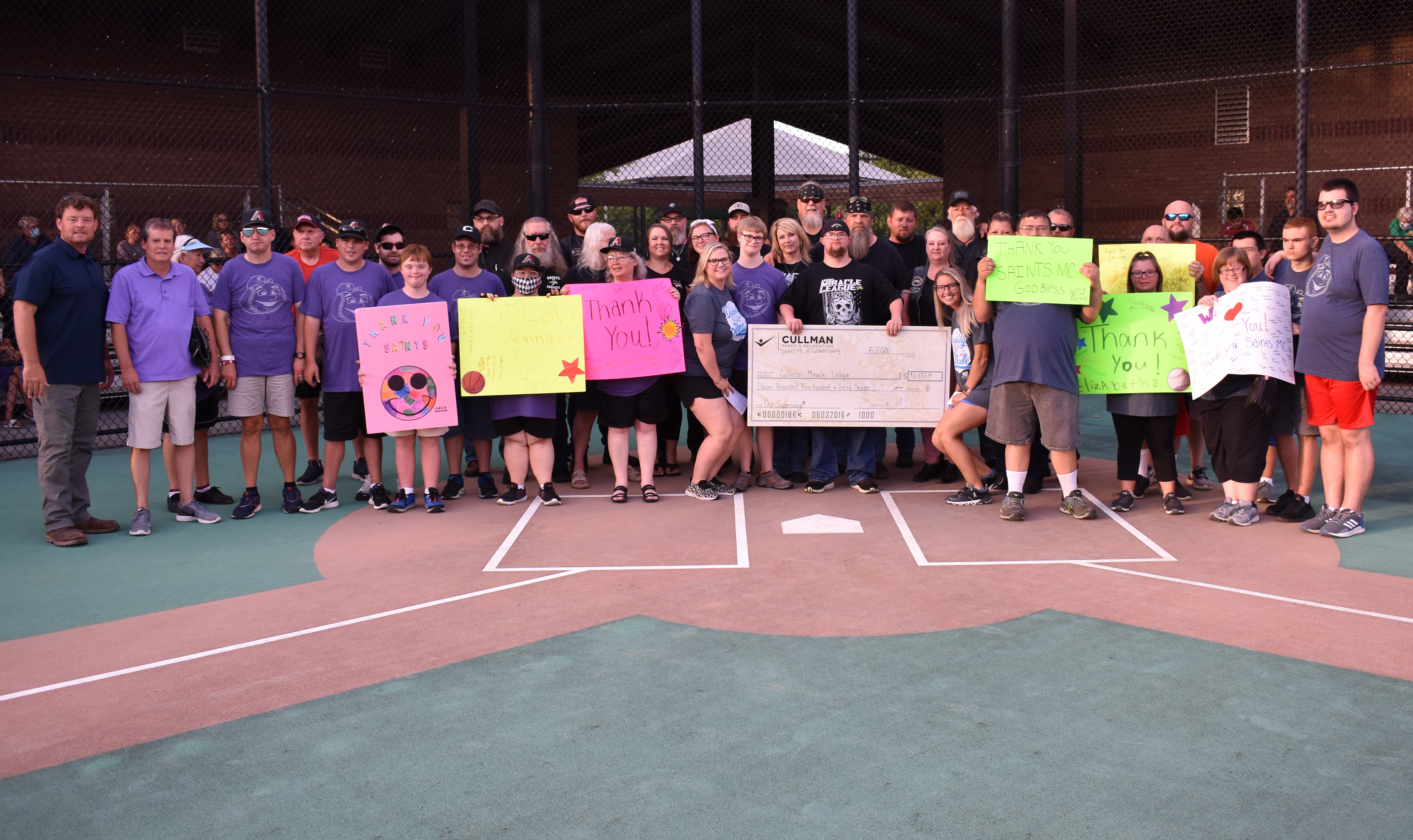 CULLMAN, Ala. – The Good Hope-based Saints Motorcycle Club visited the Field of Miracles Tuesday evening to present a check to Cullman Parks, Recreation & Sports Tourism’s (CPRST) Miracle League in the amount of $11,437, raised at the club’s June Miracle League Ride and other events. Saints MC donations to the league now total more than $31,000.