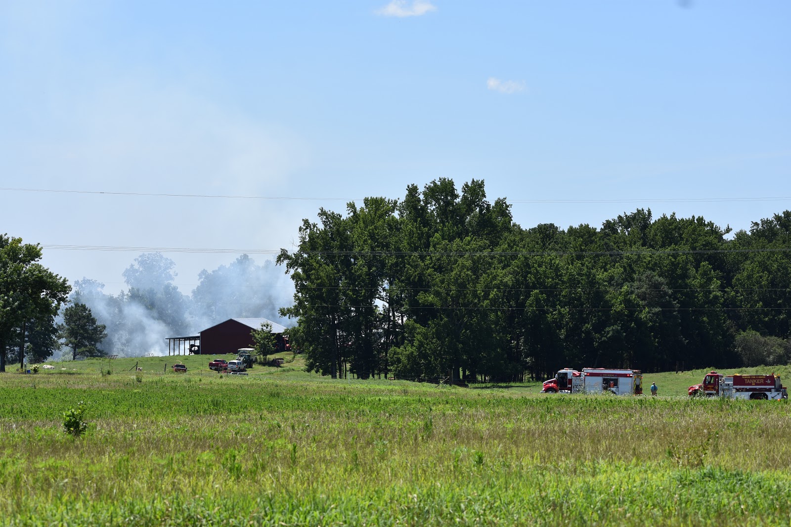 SIMCOE, Ala. – A fire that started around 10 a.m. Saturday damaged a hay barn on a farm northwest of Simcoe. Due to the remote location off County Road 1515, calls for assistance were sent by the Cullman EMS County Fire Dispatch Center to multiple departments with tanker trucks to transport water to the site. Gold Ridge, Fairview, Berlin and Vinemont Providence fire departments responded, along with Cullman EMS and the Cullman County Sheriff’s Office.