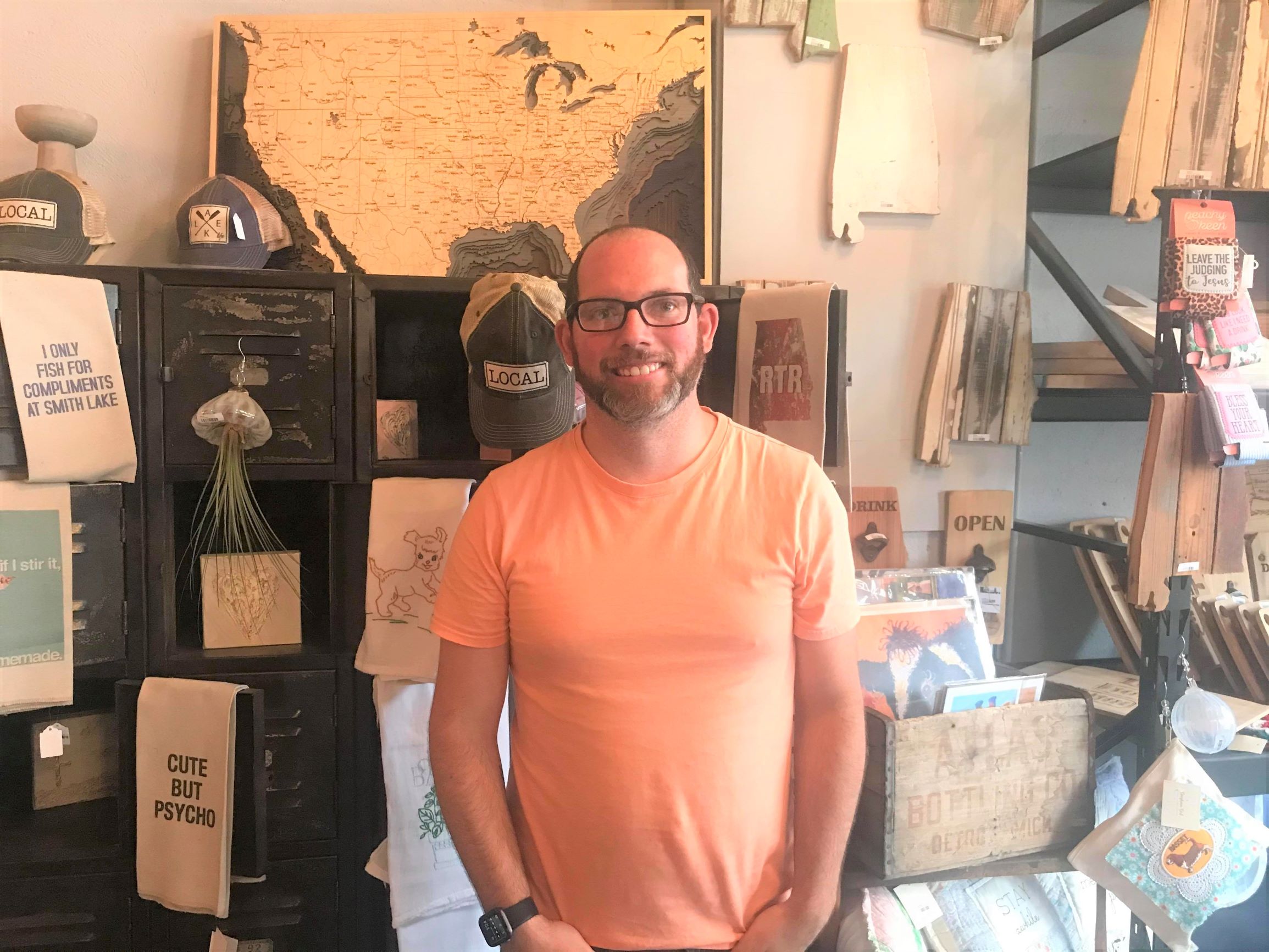 “I do all the cutting boards, book covers, the signs, the Cullman and Smith Lake signs. I ran out of time so I didn’t get to make a lot of stuff. It’s a lot of work to open a store apparently,” Maxcy laughed. “I took it easy on whatever I had and just filled it up with other people’s. I can always add stuff. I have an engraver in the back that I still have to get set up this week and I will be able to personalize anything from the woodwork to some of the leather wallets and stuff.”