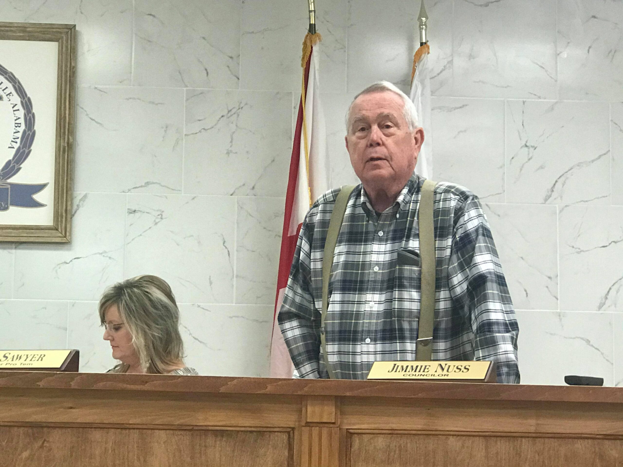 Hanceville Councilman Jimmie Nuss speaks during Thursday night’s meeting of the Hanceville City Council. (Christy Perry for The Cullman Tribune)