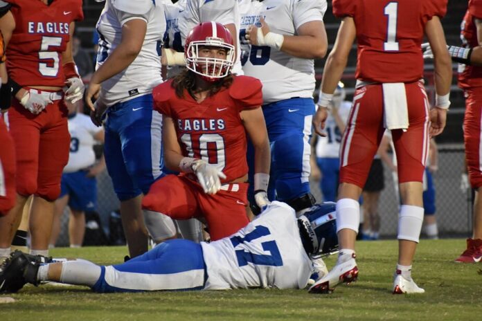 The Eagle defense forced a turnover when Greer dove on a loose ball, setting the Eagles up on the 22. On the next play, Miller found Toby Hill for a 22-yard touchdown pass to give the Eagles a 36-0 advantage late in the third quarter.