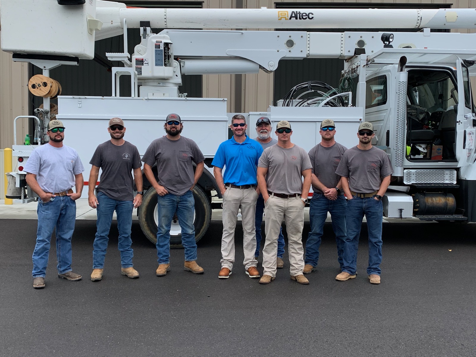 The crews took two 55-foot bucket trucks, one 42-foot bucket truck, a digger derrick and one pickup truck.
