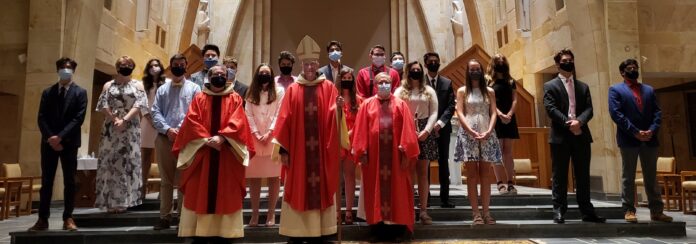 CULLMAN, Ala. – Sixteen St. Bernard Prep students and two alumni received the Sacrament of Confirmation Friday evening, Sept. 18, 2020 at Saint Bernard Abbey Church in Cullman.