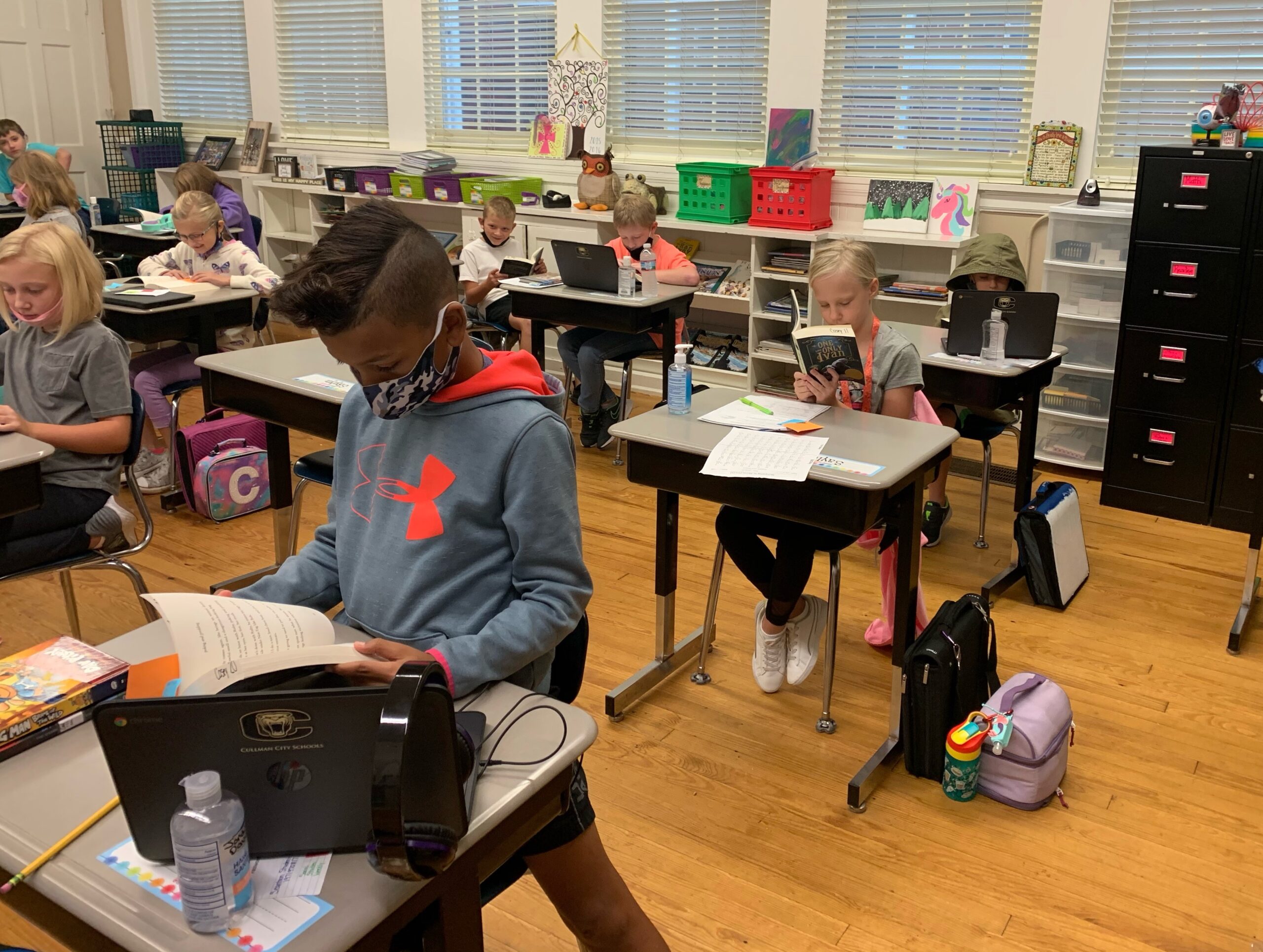Fourth-grade students in Lea Casey's class at East Elementary read “The One and Only Ivan” as part of an ongoing reading project. (Cullman City Schools)