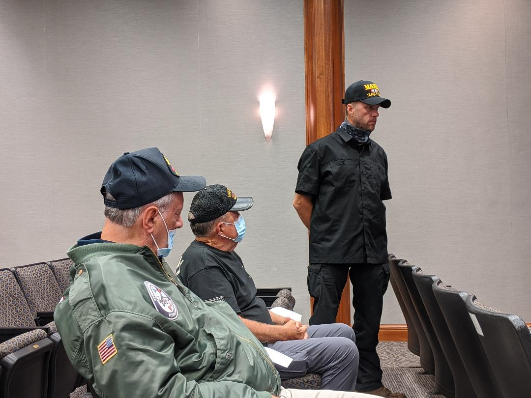 Marine Corps Operation Iraqi Freedom vet Sean Schofield briefly described his experience in Iraq and his struggles since coming home, then told the council, “When I got that shot, I felt as good as the day I got off the plane to go fight.”