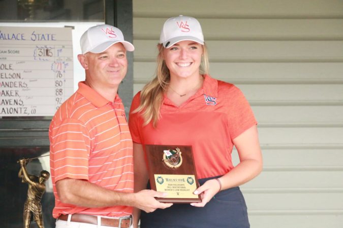 Sophomore Maddie Nelson and freshman Hannah Sanders also made the All-Tournament team for Wallace State. Nelson, a Vestavia Hills grad, finished with a 4-over 76 and Sanders added an 8-over 80.