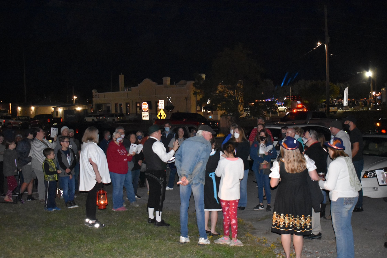 CULLMAN, Ala. – For the 11th consecutive year, Cullman’s Oktoberfest celebration- though condensed by COVID- featured an evening walking tour led by Michael Sullins and Julie Burks. Over 50 visitors followed Sullins and Burks across the tracks from the Cullman Depot, down 1st Avenue Southwest to 3rd Street (U.S. Highway 278), over to and back up 1st Avenue Southeast to the depot.