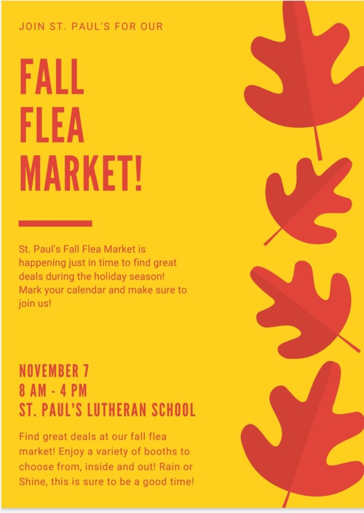 CULLMAN, Ala. – St. Paul’s Lutheran School is excited to announce the debut of its Fall Flea Market Saturday, Nov. 7, from 8 a.m.-4 p.m. A variety of booths will be available for shoppers to peruse. St. Paul’s Fall Flea Market will be in the back parking lot of the church and inside the gym. Santa Claus will be making a stop between 9 a.m.-noon for those who would want to get their lists to him early!