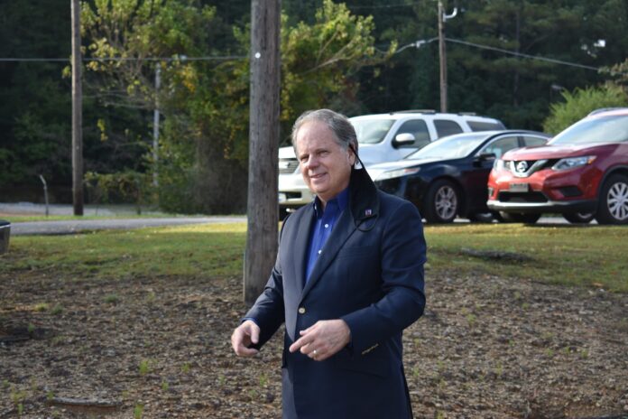 CULLMAN, Ala. – Incumbent U.S. Sen. Doug Jones, D-Alabama stopped in Cullman Monday afternoon to address a small crowd of local supporters outside the Cullman County Fair. He shared with the group his connection to the area through his wife Louise New, a Cullman native, and talked about the status of the campaign and various issues. Jones will face former Auburn football coach Tommy Tuberville in the Nov. 3 General Election.