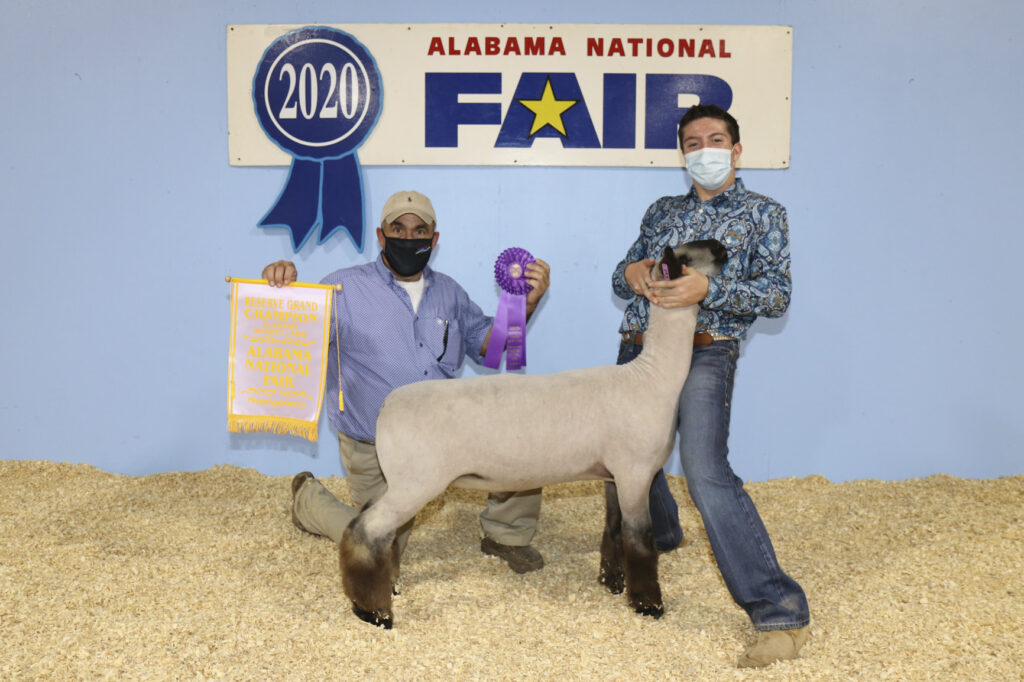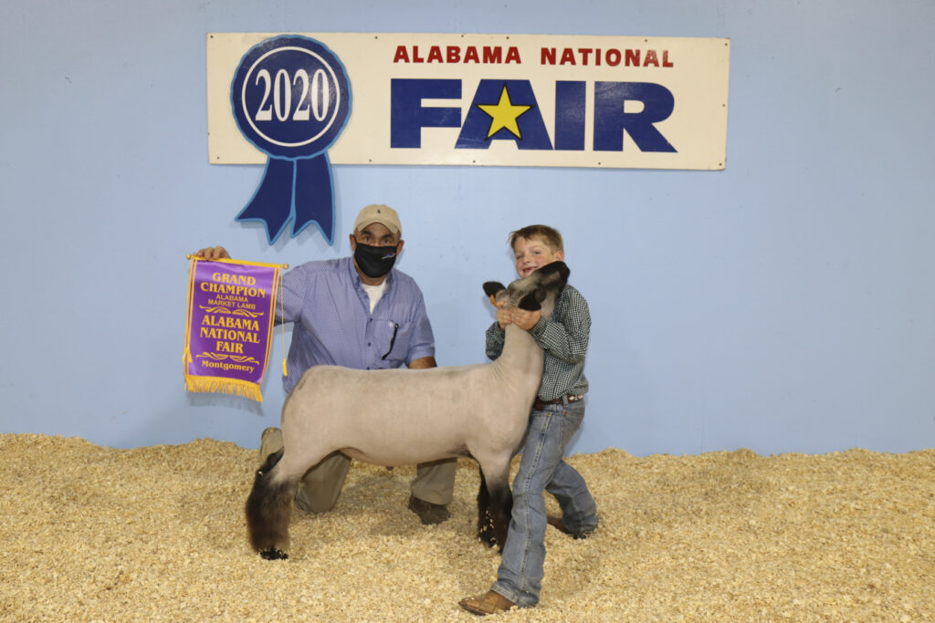 Braxton Gambrill of Cullman County exhibited the Champion Alabama Born & Bred Market Lamb at the Youth Sheep Show during the Alabama National Fair Oct. 9. He is pictured with judge Al Schminke of Van Horne, Iowa. The contest was held during the Alabama National Fair and was sponsored by the Alabama Farmers Federation and Alfa Insurance.