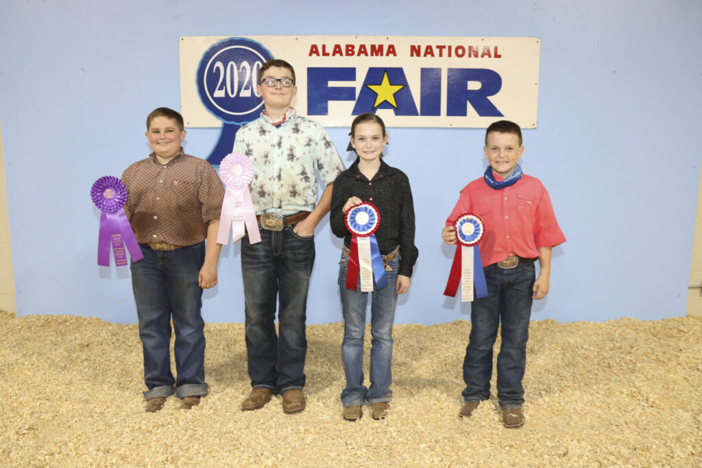 Beginner Showmanship Contest winners at the Sheep Show Oct. 9 were, from left, Palmer Mitchell of Montgomery County, Class A; Owen Johnson of Cullman County, Class B; and M.J. Flowers of Pike County, Class C. The contest was held during the Alabama National Fair and was sponsored by the Alabama Farmers Federation and Alfa Insurance.
