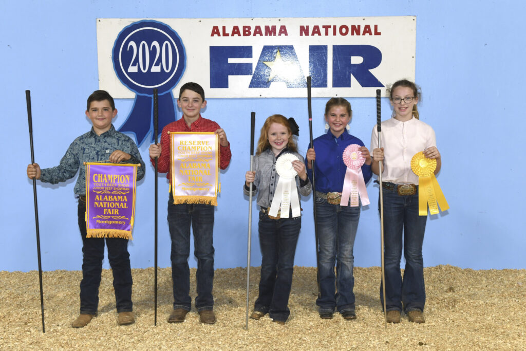 Intermediate Showmanship winners during the Youth Beef Show were, from left, Annabelle Wesley of Pike County, first; Gus Ashley of Montgomery County, second; Curt Williams of Marshall County, third; Rex Harrison of Cullman County, fourth; and Caden Childers of Morgan County, fifth. The show was held Oct. 17 during the Alabama National Fair in Montgomery. Show sponsors are the Alabama Farmers Federation and Alfa Insurance.Intermediate Premier Exhibitors during the Youth Beef Cattle Show were, from left, Rex Harrison of Cullman County, first; Mackenzie Smith of Blount County, second; Gus Ashley of Montgomery County, third; Mary Elliott Martin of Lee County, fourth; and Curt Williams of Marshall County, fifth. The show was sponsored by the Alabama Farmers Federation and Alfa Insurance at the Alabama National Fair Oct. 17 in Montgomery.Junior Showmanship winners during the Youth Beef Show were, from left, Greer Jones of Pike County, first; Cole Eubanks of Cullman County, second; Lou Lou Thompson of Pike County, third; Lillian Smith of Chilton County, fourth; and Sara Beth Faust of Blount County, fifth. The show was held Oct. 17 during the Alabama National Fair in Montgomery. Show sponsors are the Alabama Farmers Federation and Alfa Insurance.