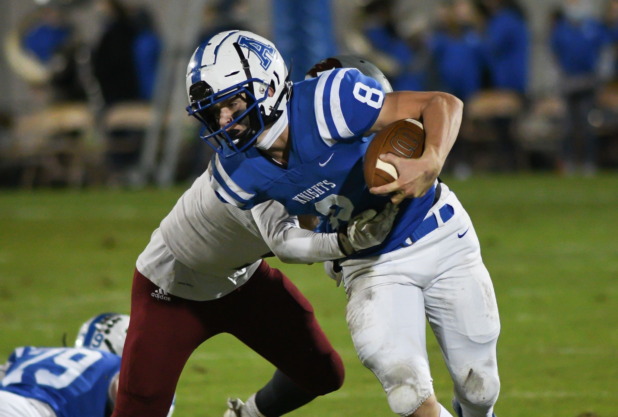The fourth quarter saw Arab run the ball and burn off a lot of clock. Johnathan Pugh recovered a Boaz fumble late that helped seal the 27-8 win for the Knights.