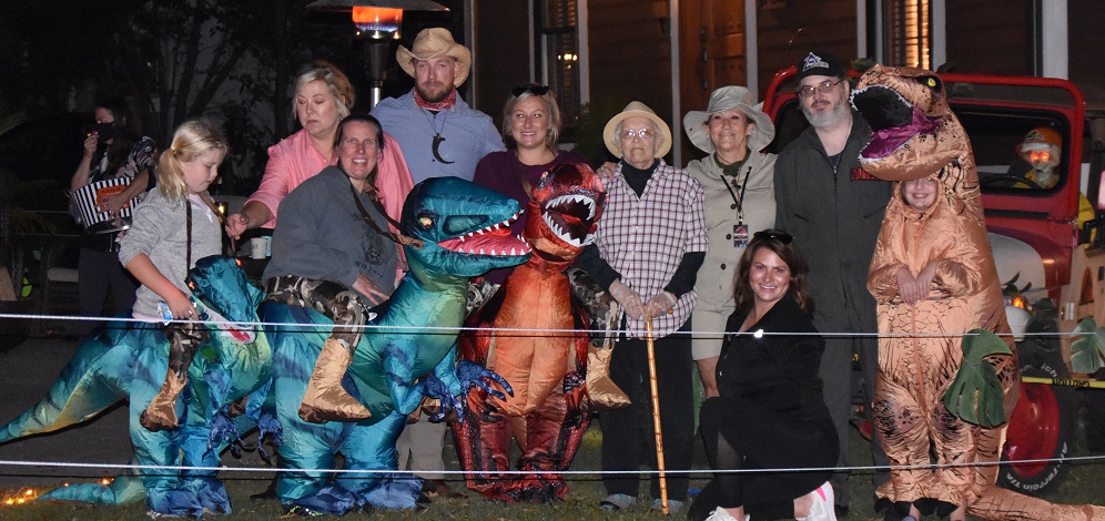 Summerford told The Tribune, “Last year, our daughters wanted to be a herd of dinosaurs for the following year, and we said, ‘Okay, we’re dressing everybody up as dinosaurs. We should do Jurassic Park because it’s scary. And we did it; we created it!”