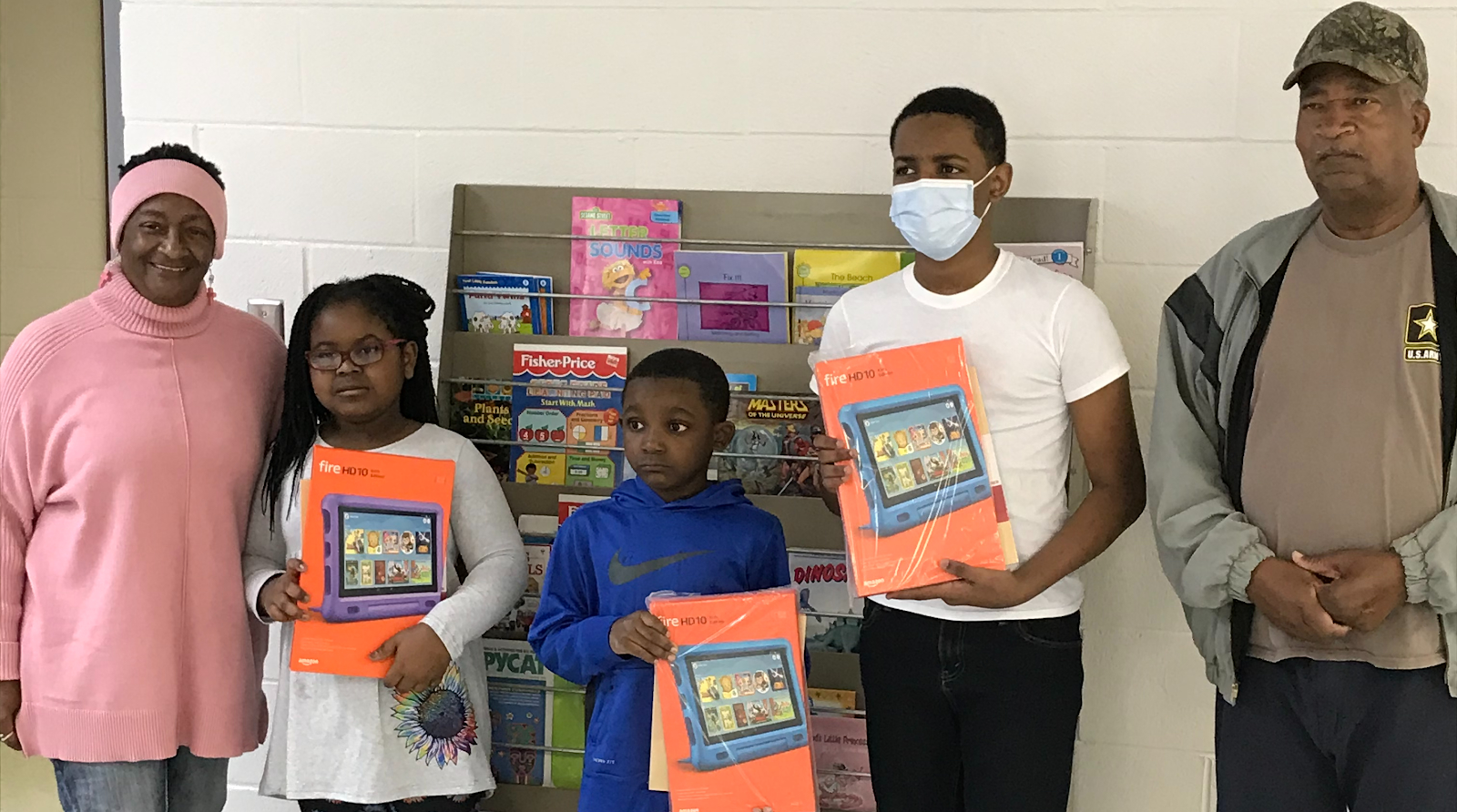 COLONY, Ala. – On Thursday, Ethel Alexander- coordinator of Colony’s recently established tutoring program and the town’s newly appointed mayor pro tem- along with former Mayor Donnis Leeth, presented Amazon Fire HD 10 tablets to students in the tutoring program. The devices feature dual band Wi-Fi, high-definition displays and hands-free operation via Alexa, tools that will come in handy for the students, who currently have to do much of their schoolwork from home.