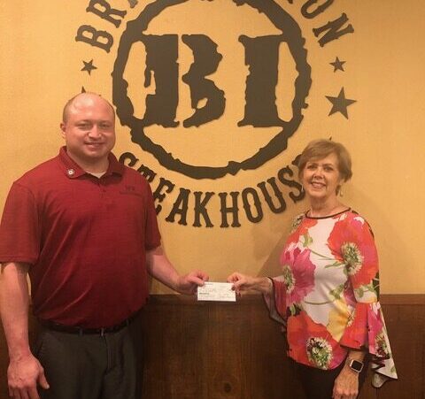 Brandin’ Iron General Manager Josh Speakman, left, accepts a check from Cullman County Republican Women (CCRW) President Jacqueline B. Schendel. The organization is helping sponsor the annual Thanks-GIVING dinner, a project of nonprofit Saving Forgotten Warriors, which has teamed up with Speakman for the last five years to provide a Thanksgiving meal for veterans and their families. This year’s dinner will take place in two locations from noon-6 p.m. Monday, Nov. 23- one at the Brandin’ Iron restaurant in West Point and one at Veterans of Foreign Wars Post 2214 in Cullman. The event fed more than 1,000 people last year and organizers are expecting a good crowd again this year. If you are interested in helping with a donation of $10 or more or want to volunteer, contact Speakman at 256-739-1112.