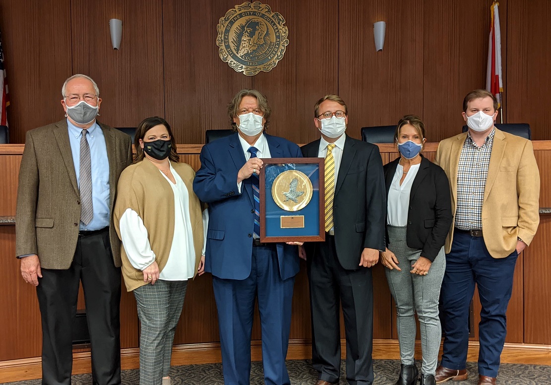 CULLMAN, Ala. – The Cullman Economic Development Agency (CEDA) in a small ceremony at Cullman City Hall on Thursday revealed it won a gold category award for its public-private partnership to assist HomTex. This project was in the Public-Private Partnerships category of the International Economic Development Council’s (IEDC’s) 2020 Excellence in Economic Development Awards Program. The honor was presented at an awards ceremony in October during the IEDC Annual Conference, which was held virtually.