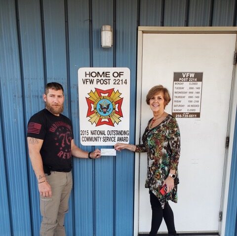 The Cullman County Republican Women donated $500 to Cullman’s Veterans of Foreign Wars Post 2214 recently. President Jacqueline Schendel presented the check to Post Commander Brian Monk. The Republican Women meet monthly at 6 p.m. at the VFW building located at 112 Veterans Dr. SW. (No meetings in July or December.) Everyone is welcome to attend.