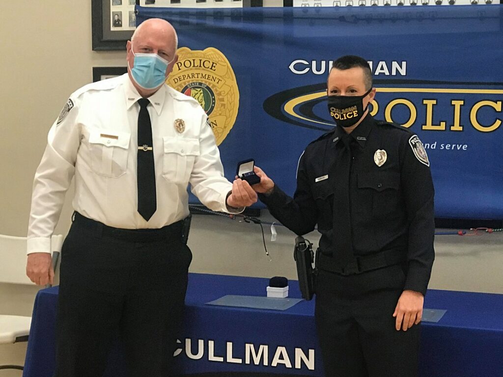 CULLMAN, Ala. – Four officers with the Cullman Police Department (CPD) were presented with Years of Service Pins at a small ceremony Wednesday afternoon. Officer Kelley Hubbard, Officer Jonathan England, Officer Dustin Colburn and Officer Hunter Potts each received pins for 5 years of service.