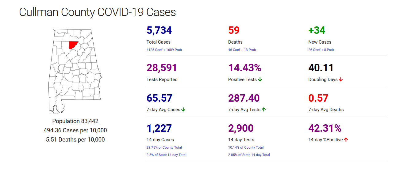 Total confirmed cases in Cullman Co.: 4,125 (+26 since yesterday)