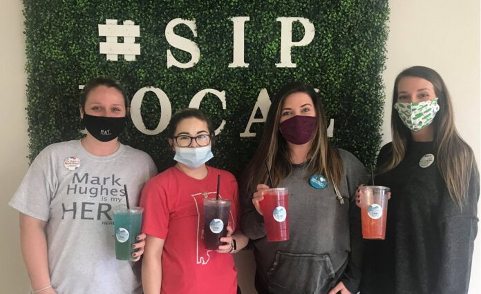 Owner Brandi Johnson was busy Friday morning mixing up colorful drinks for the many customers who were excited about the juice bar’s arrival. Leading up to the opening, Johnson did “tea drops” around Hanceville to introduce herself and her products.