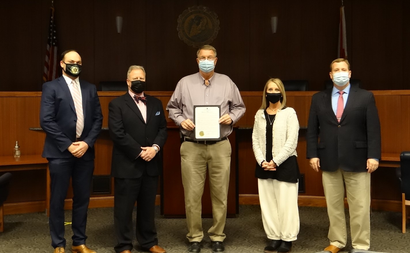 CULLMAN, Ala. – Cullman Mayor Woody Jacobs on Friday officially proclaimed January 2021 “Human Trafficking Awareness Month” in the city of Cullman. On hand to accept the proclamation were Cullman County Human Trafficking Task Force members District Judge Wells R. “Rusty” Turner, III, District Judge J. Chad Floyd, Cullman County Juvenile Probation Officer & Task Force Chairperson Kathy D. Wilson and Cullman County Assistant District Attorney Jeremy Cline.