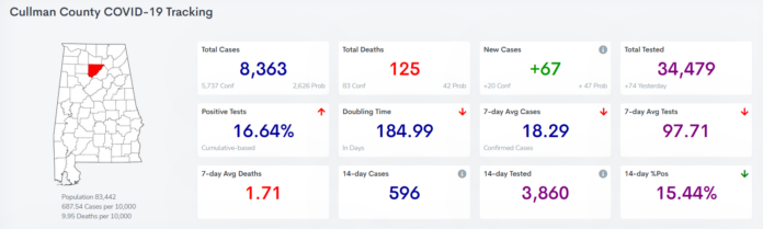 CULLMAN, Ala. – According to the Alabama Department of Public Health (ADPH), Cullman County added 20 new confirmed cases of COVID-19 in the last 24 hours, with 5,737 cases confirmed across the county since the beginning of the pandemic. Statewide, the ADPH reported 1,930 new confirmed cases in the last 24 hours.