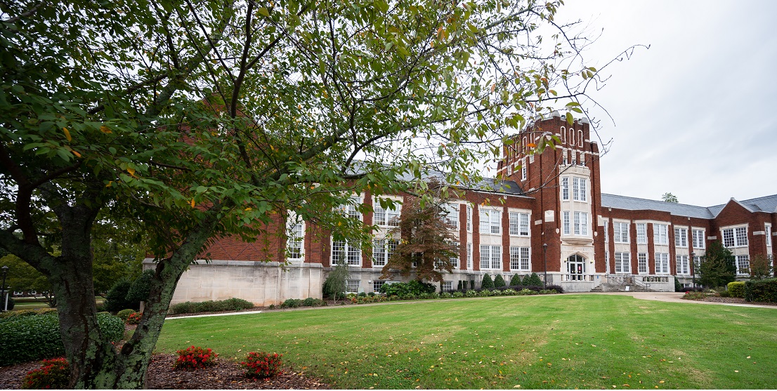 Constructed in 1930 as the university’s main classroom and administration building, the three- story, gothic Angle Hall sits atop a hill in the heart of campus, surrounded by historic oaks and gardens. Complete with an iconic bell tower, which chimes hourly, the building is one of northeast Alabama’s most notable landmarks.