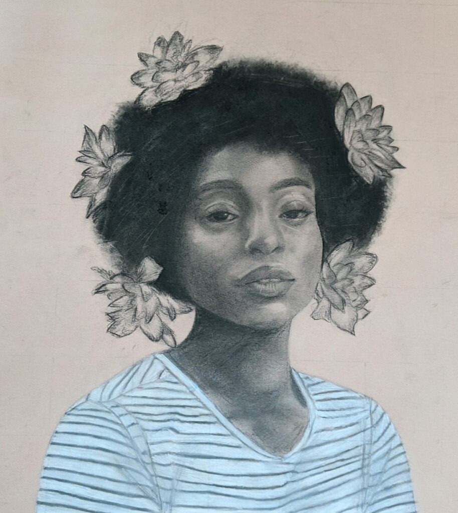 Of Lawson’s piece, done in charcoal pencil, Miller smiled, “It was a portrait. A VERY beautiful portrait. It’s so good that when I posted a picture of it on Facebook, Facebook itself kept asking if I wanted to tag that person in the photo.”