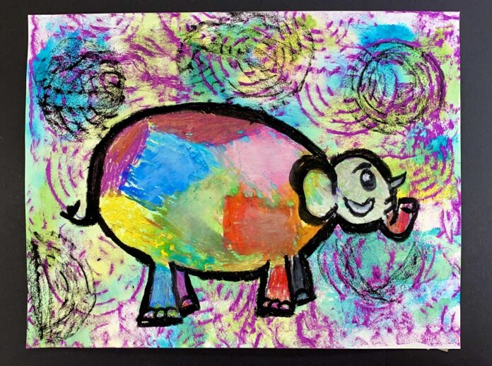 When Carter was asked which art lesson was his favorite, he chose the elephant. It features vivid watercolors.