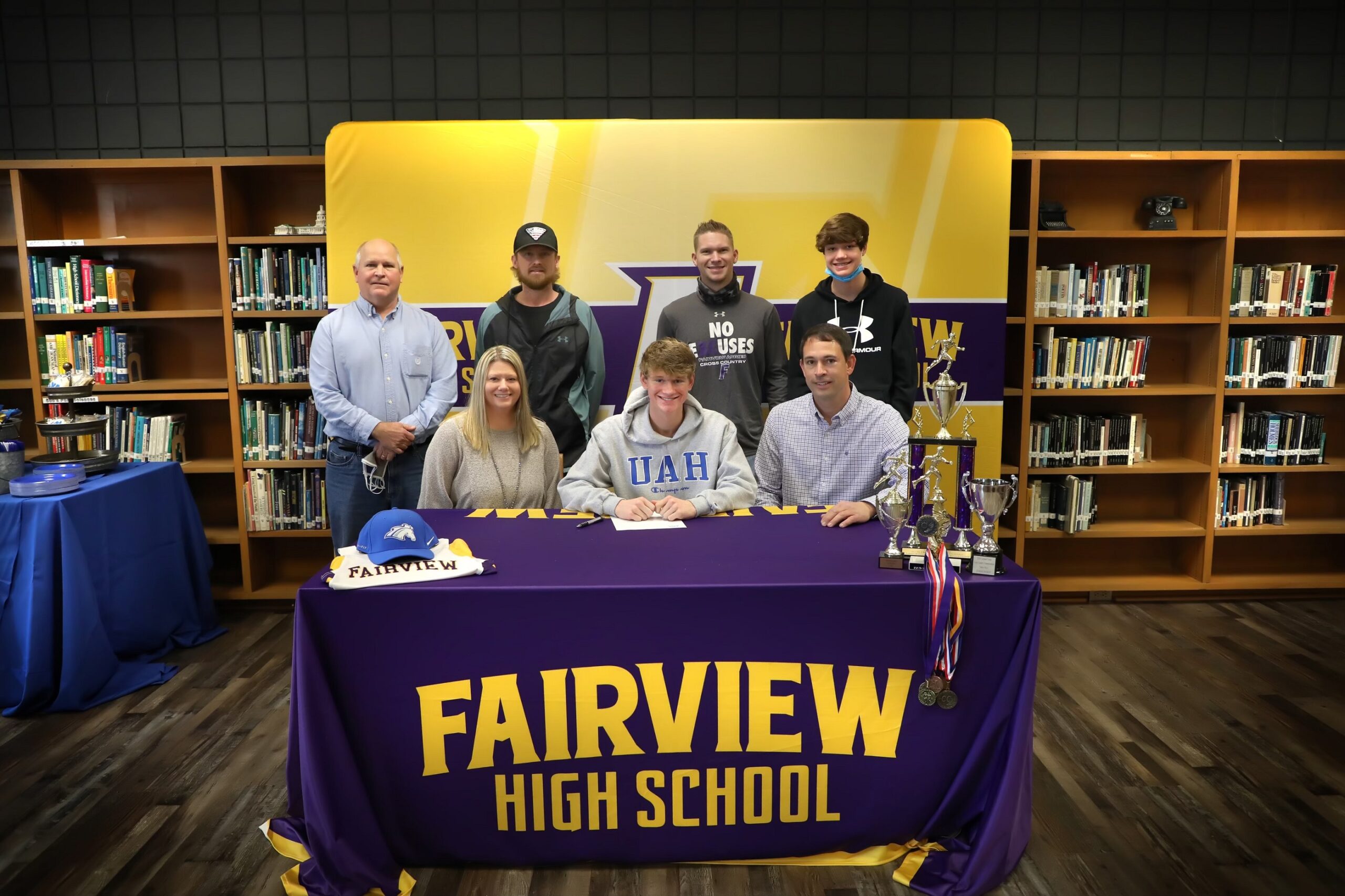 FAIRVIEW, Ala. – Friday was a special day at Fairview High School as friends, family, coaches and teammates met in the library to celebrate the next step of one of their fellow Aggies’ athletic and academic career. After putting together a stellar high school cross country career, Peyton Bailey signed a scholarship to continue running at for Head Coach David Cain and the UAH Chargers.