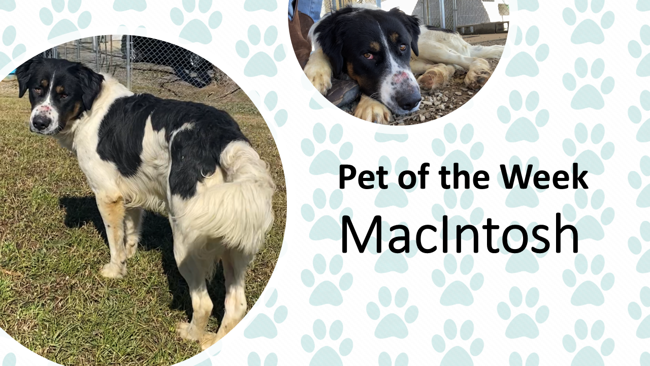 MacIntosh’s adoption fee is $100 which includes DHLPP vaccine, Bordetella vaccines, rabies vaccine, wormer, general exam at the vet, neutering, microchip, free 30-day health insurance policy issued by 24PetWatch (with valid email only) and a free bag of food from Cullman Pet Depot (you must pay sales tax).