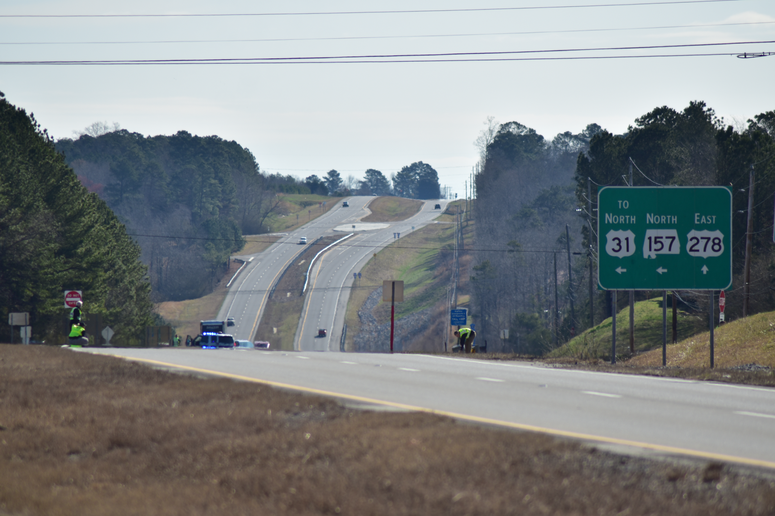Officers set up for drone mapping near HWY 157 and 278 (Coleman Callan)