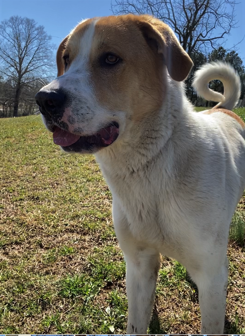 Emmett is an Anatolian Shepherd mix of unknown age. He’s a laid-back low-to-medium energy gentle giant who’s respectful of personal space and skillful on his leash. He does enjoy some outdoor time and will need a little room to play.