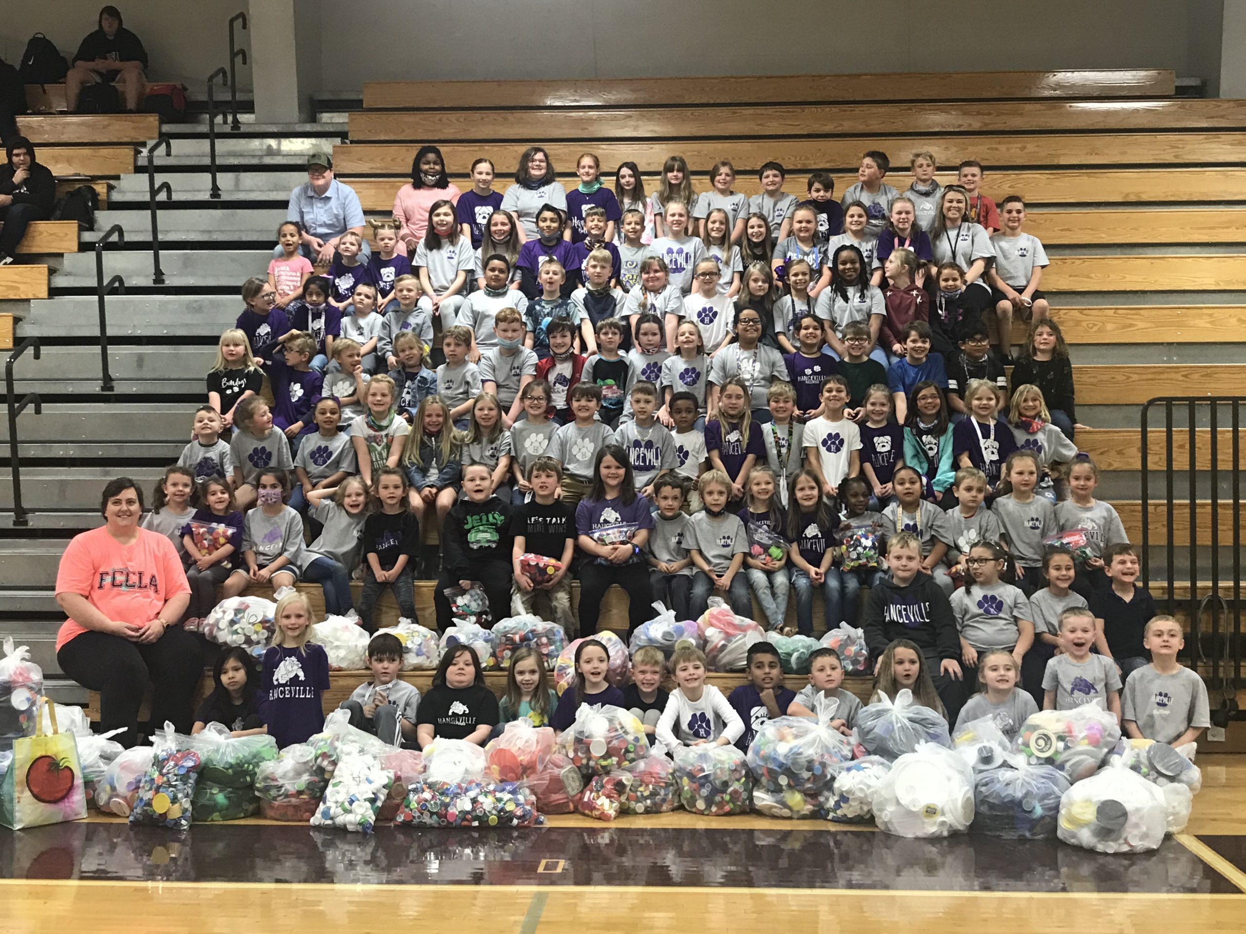 HANCEVILLE, Ala.- Students from Hanceville Elementary School gathered Tuesday afternoon to celebrate their efforts to help Hanceville High School’s Family, Career and Community Leaders of America (FCCLA) collect plastic lids for a recycling project. The plastic lids will be recycled and exchanged for three benches (also made from recycled plastic) that will be brought back from Evansville, Indiana and placed at the schools.