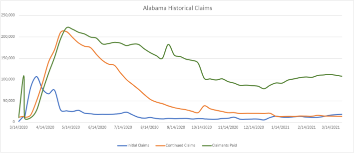 MONTGOMERY, Ala. – The Alabama Department of Labor released the official count for initial claims filed during the week of March 21-27, 2021.