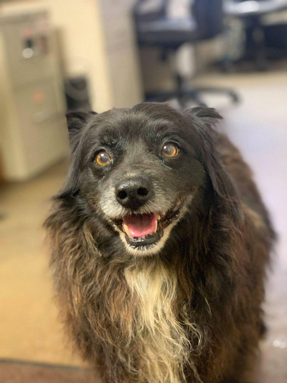 Mary is a 7-8–year–old Sheltie mix. She’s a really laid-back, low–energy pet who’s housebroken and shows every sign of having been someone’s home companion for a long time. She’s quite content hanging around with her people and keeping folks company. Ruttkay calls her “a perfect lady on her leash.”