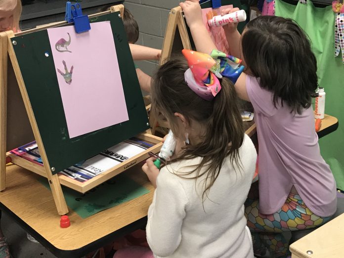 Sullins and Wren gave the Tribune a tour of the P3 classrooms Tuesday afternoon. The students were engaged as they completed hands-on learning activities on the lessons their teachers presented. One classroom was learning of dinosaurs and rather sitting idle at their desks, students were busy with fun dinosaur–related activities. Disguised as play, the children were participating in memorable learning activities.