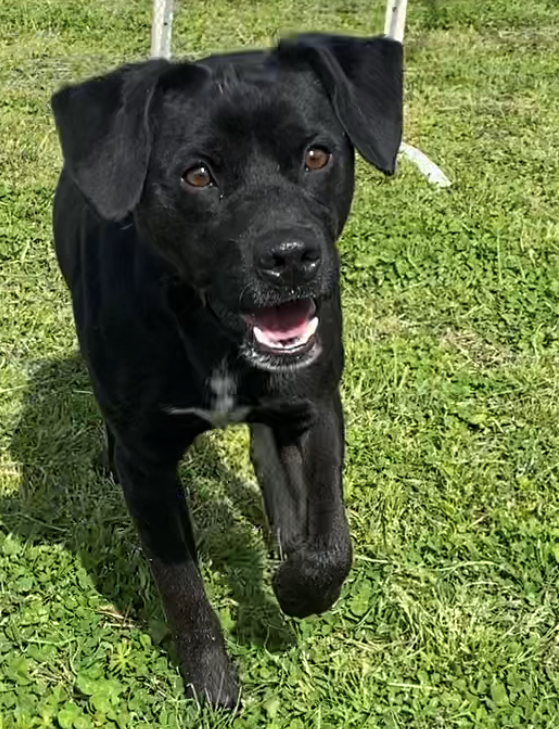 Dandy is a 1.5–year–old Lab/Terrier mix. He’s a lively-but-not-hyper, medium–energy pet whom Ruttkay calls a “gentleman on his leash.” He craves human company and all kinds of activities with his people. He’s a fan of doggie toys and balls, and enjoys the refreshing water of the kiddie pool on warm afternoons.