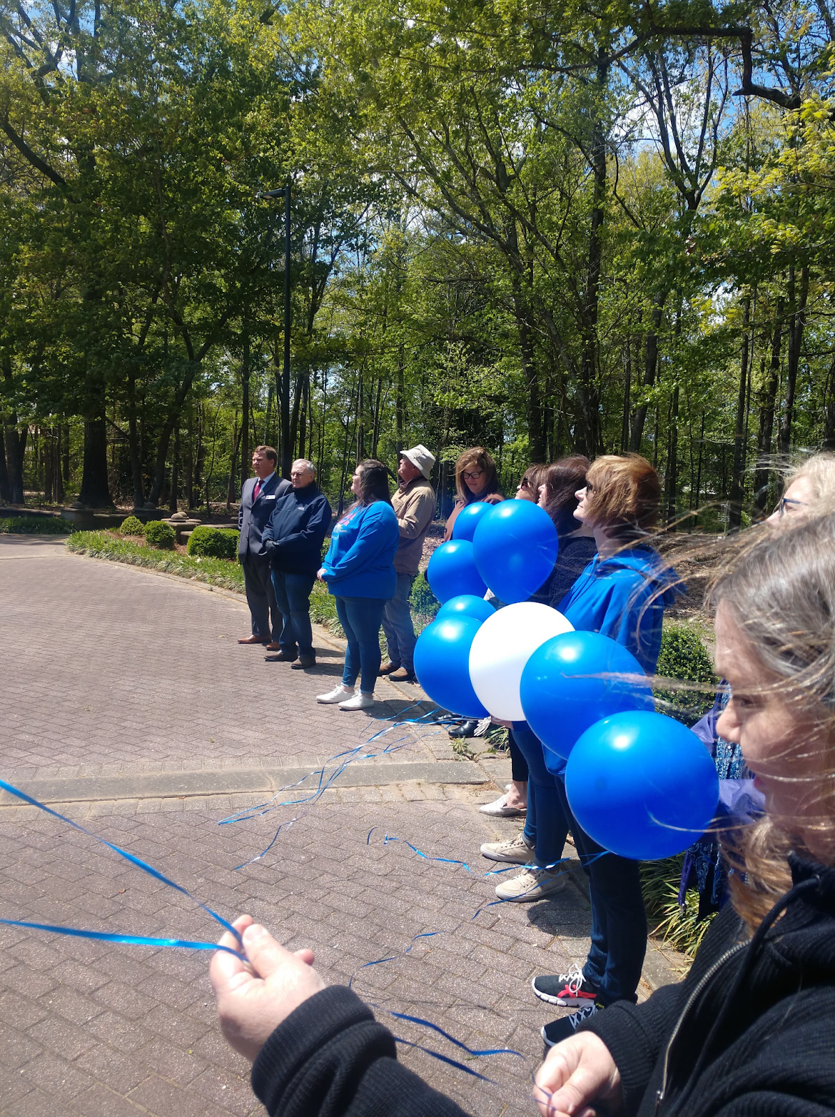Cullman Caring for Kids (CCK) held an awareness event at Heritage Park Wednesday in observance of Child Abuse Prevention Month, decorating the park with blue pinwheels and ribbons, and placing crosses and releasing balloons for each of the 21 children who died in Alabama last year due to abuse or neglect. Representatives of Cullman County DHR, United Way and District Court were present, with District Judge Chad Floyd speaking. District Judge Rusty Turner read the names of the children as the balloons were released.