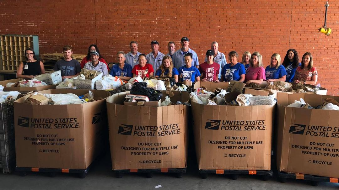 Letter carriers have, in years past, collected large amounts of food for pantries like Cullman Caring for Kids. (Photo courtesy of Becky Goff/UWCC)