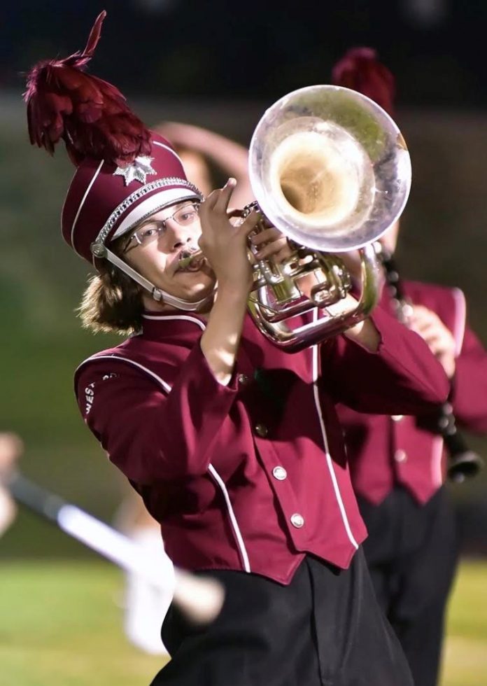 The past two school years were filled with uncertainty, but Drinkard didn’t let that discourage him or get in the way of his goals. “It was something! Any opportunity I was presented and was able to do, I was thankful for. I wasn’t terribly despondent,” Drinkard said. While he missed the chance to travel with his bandmates to marching contests in the fall, he added, “It was more so just being able to get through the (football) season.”