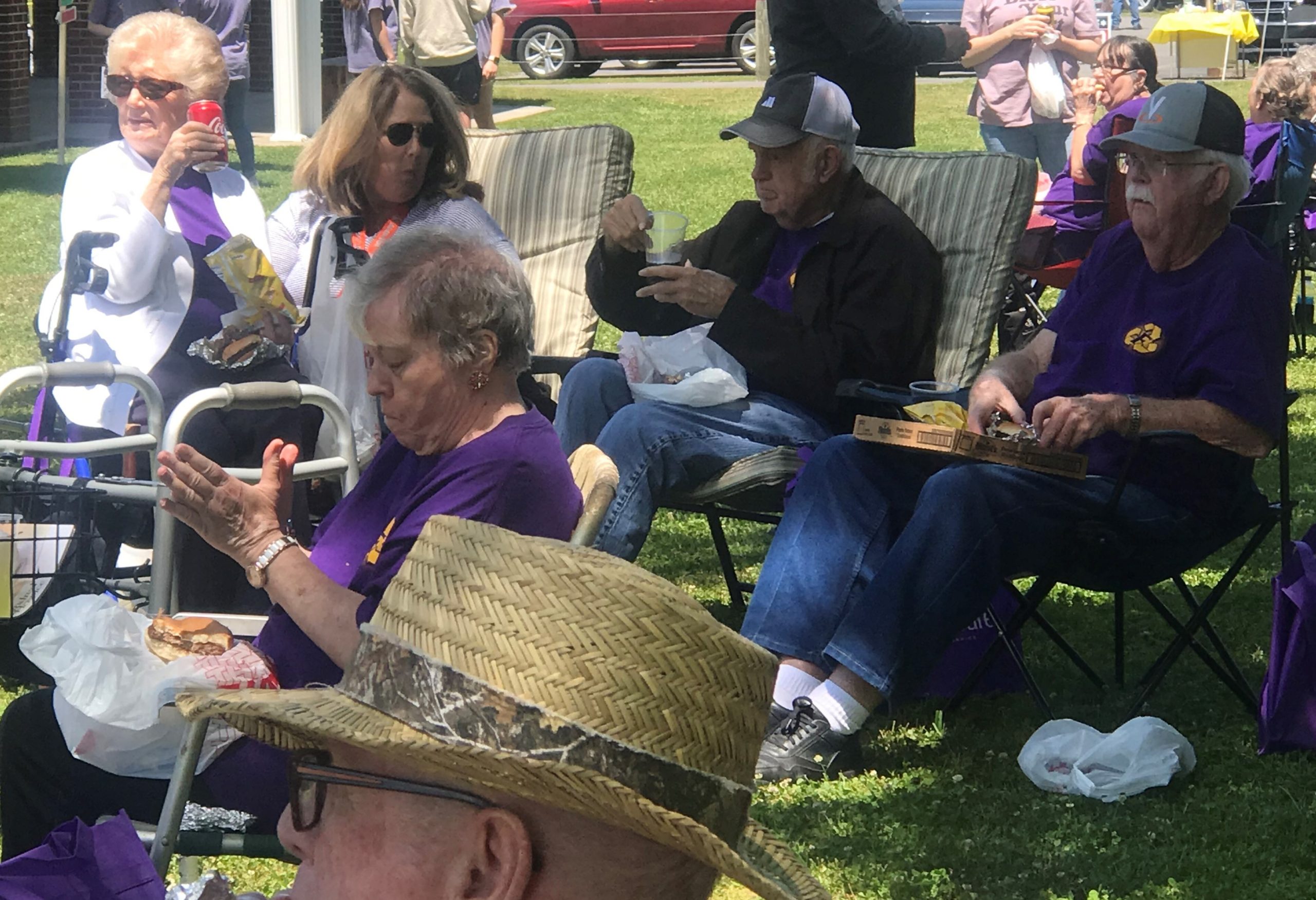 Fairview Mayor Keith Henry was excited to welcome the large crowd of seniors proudly wearing their purple and gold t-shirts to a beautiful and sunny day in the park. He said, “We are just glad to have everybody out and see a great turnout. We are glad to have a park that y’all can come and enjoy. Yall are what make the community, it’s not the town. It’s the people who live in it and we love every one of you. Isn’t it great to live in a place with a nice park where the sheriff will come out and pray for us? It’s a special community.