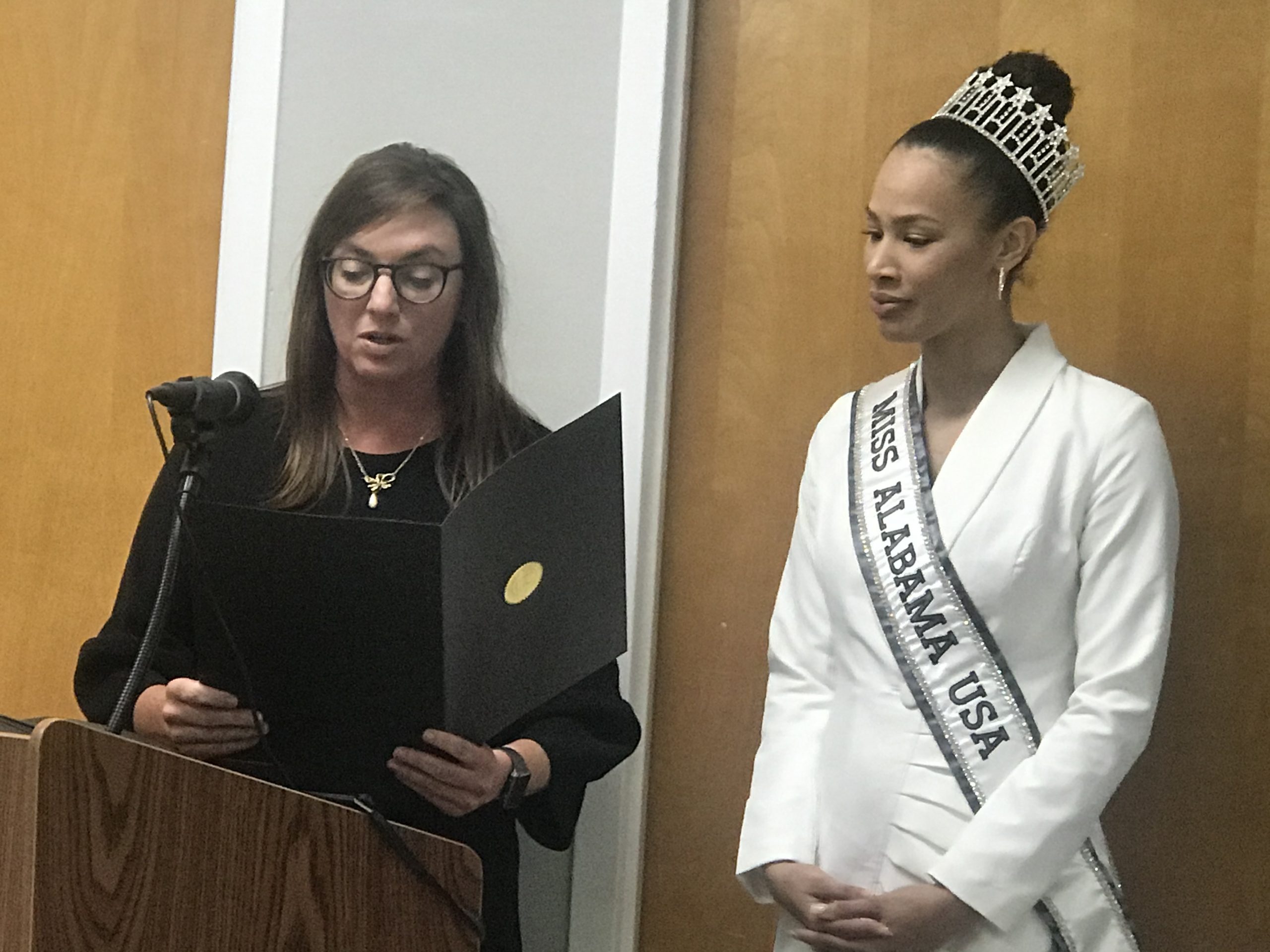 CULLMAN, Ala. – The Cullman County Commission honored Miss Alabama USA Alexandria Flanigan at the beginning of its Tuesday evening commission meeting. As stated in the proclamation read at the meeting, Flanigan is from Hanceville, Alabama and graduated from Good Hope High School.