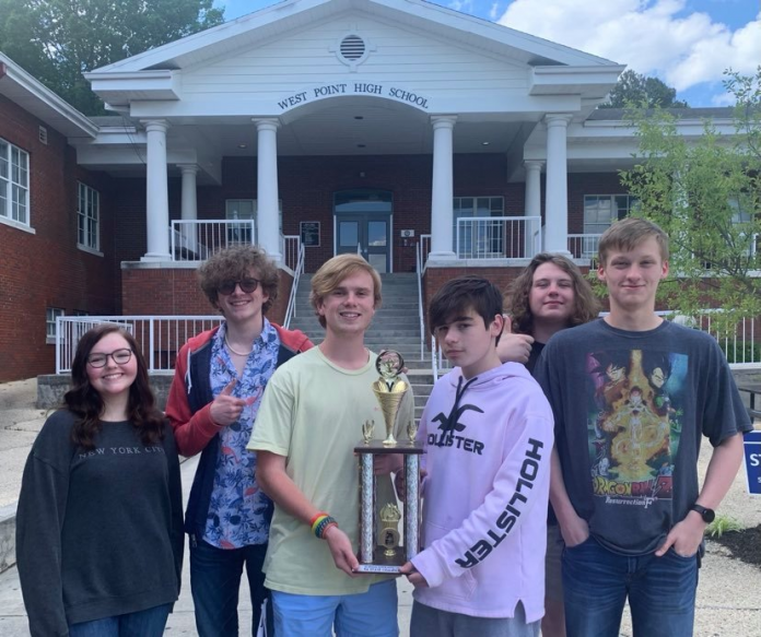 WEST POINT, Ala. – West Point High School’s Scholars’ Bowl team finished its 2020/21 season as the top 5A team in the state of Alabama, earning first place honors in the state tournament. West Point played Holtville High School in the championship match, winning a fairly close 230-180, with Carter Duke nailing down the victory on the last tossup question of the match.